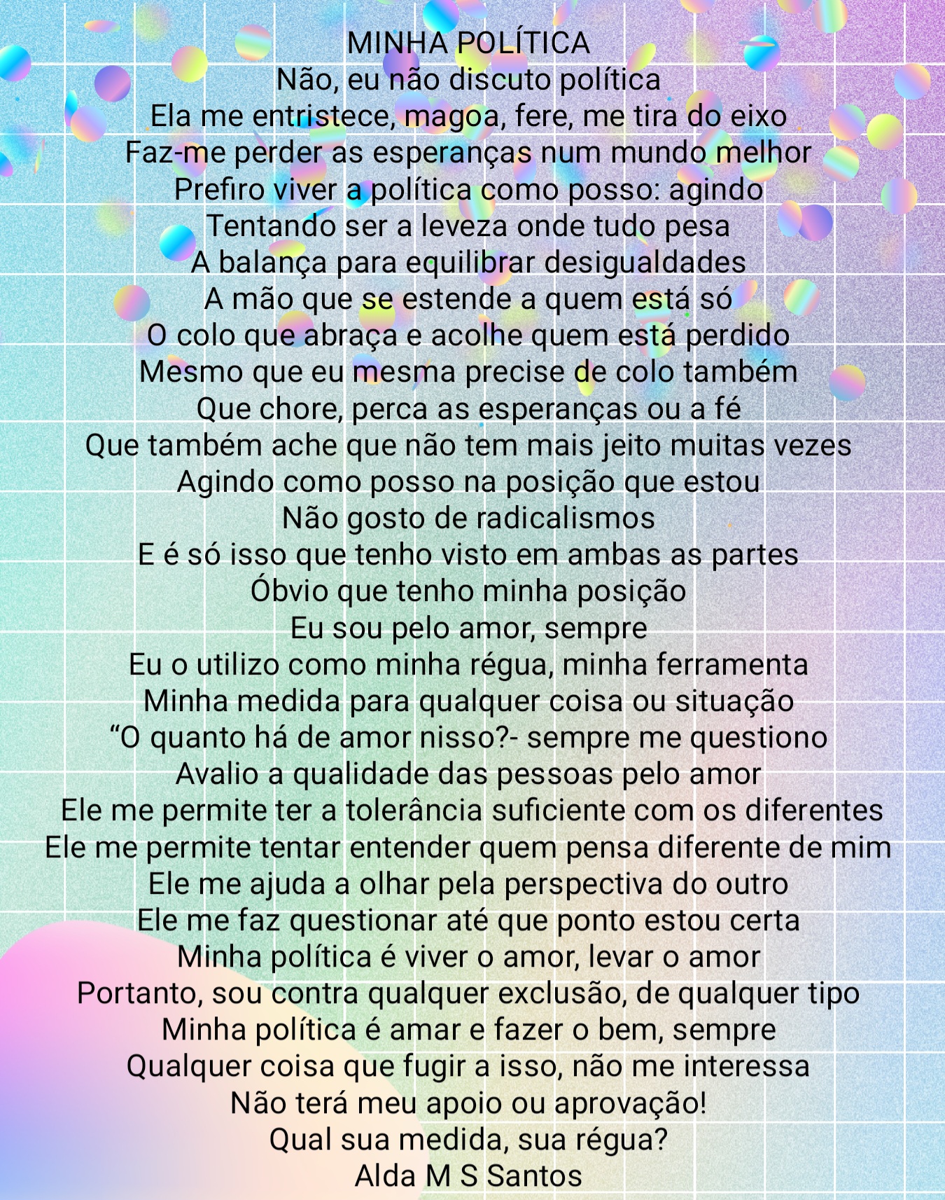 Minha política é amar e fazer o bem, sempre