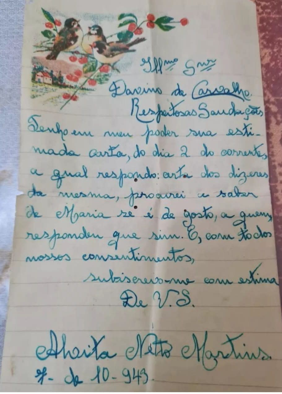 O registro ali, no fundo de um baú a missiva foi encontrada