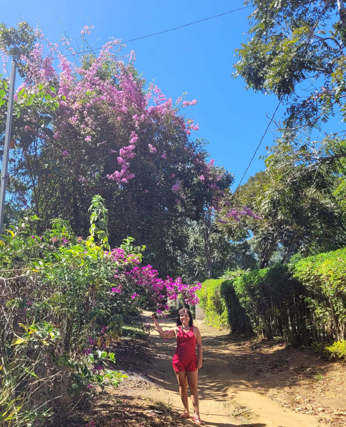 Nas cercas ou jardins em vermelho, rosa, roxa, branca ou amarela